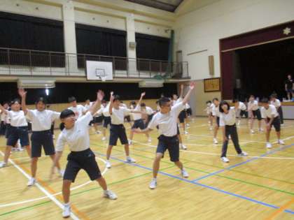 いよいよ体育大会に向けて本格的な練習が始まりました。今日は2、3年生合同ダンス練習です。ダンス部中心にこれまで取り組んできました。短い練習時間の中で皆さん本当によく頑張っていると思います。この調子で更に気持ちを盛り上げていきましょう!