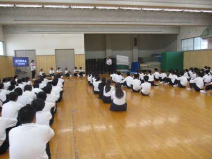 今日の全校集会では、矢田西中学校ダンス部(地域拠点化校)が、全国大会で金賞を受賞した表彰を行いました。