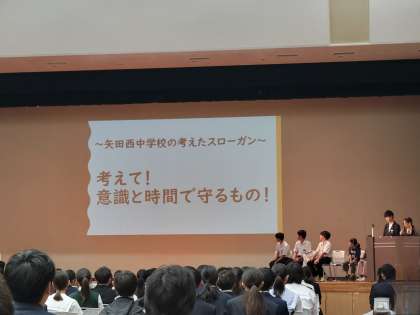 矢田西中学校生徒会執行部が、大阪市第4ブロックの代表校として選ばれ、「スマホ依存」問題の取り組みを発表しました。