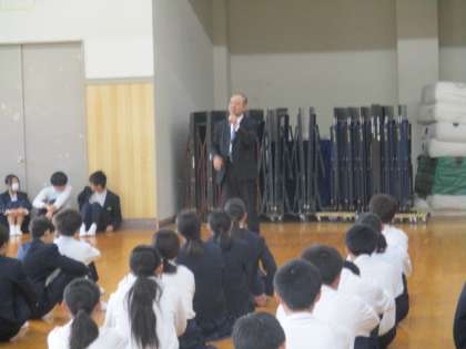 本日の校長先生からのお話は、体育大会・文化祭と大きな行事が終わりました。色々なことがあったかと思いますが、皆で協力しあって素晴らしい行事を作り上げてくれたと思います。この経験を是非次につなげていってほしいとのお話でした。