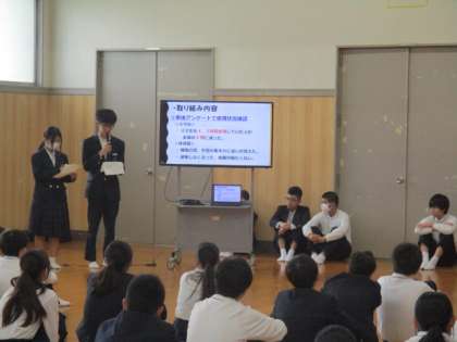 今日の全校集会では、スマホサミットでの発表を皆さんにお伝えし、これからのスマホとの付き合い方について考えてほしいとのことでいた。