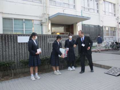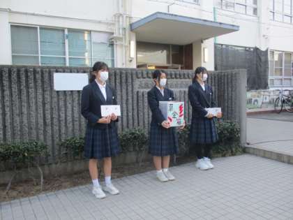 昨日の全校集会で生徒会から赤い羽根募金の伝達があり、本日の登校時に開始されました。