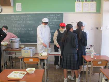 2年生は給食準備の様子です。ちゃんと並んで順番待ちです!