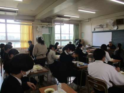 心地よい音楽を聴きながら、2班に分かれての給食です。