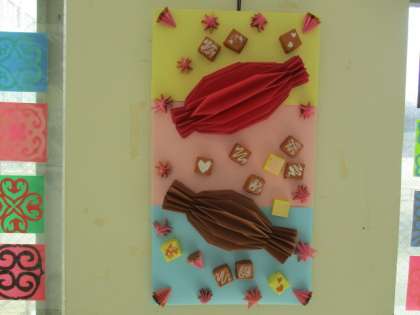 いつも矢田西中学校の玄関は、美術部の皆さんの心のこもった作品で彩り、ご来校される皆さん、登校してきた皆さんの癒しにつながっています。
