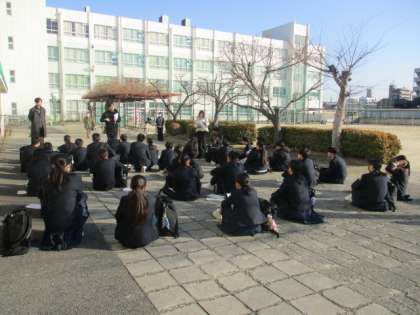 晴天に恵まれ、2年生が班活動で大阪市の施設を訪問します。