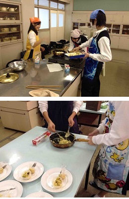 過日技術部で栽培・収穫したさつま芋を使用して、家庭科部と合同で調理実習を実施しました。さつま芋の蒸しパン・ミルクレープ・茶巾絞りの3つを作りましたが、どれも皆大変おいしく出来上がりました。