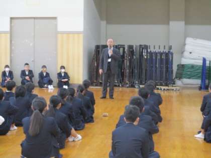「3年生が無事に卒業し、2年生は最高学年になります。1年生は後輩ができます。残りの1週間で今までを振り返り、これからのことを見つめてほしいと思います。」