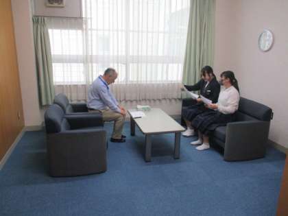 職場訪問するにあたり、スクールサポートスタッフの方にご協力いただき、訪問練習をしました。