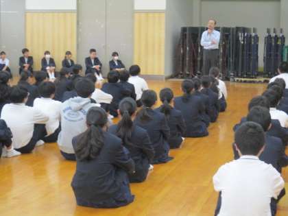 本日の全校集会で、校長先生より「いじめについてついて考える日」及び「いのちについて考える日」についてのお話がありました。