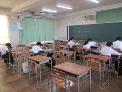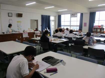 学校元気アップ地域本部事業による図書室での放課後テスト前学習会、また、2年1組・2組でも教室で学習をしています。
