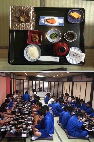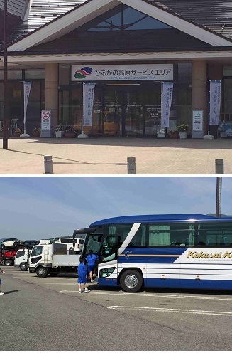 宿舎で朝食をとり、バスで出発。途中、ひるがの高原サービスエリアでトイレ休憩をとり、今日の最初の目的地である郡上八幡の美山鍾乳洞に向かいました。