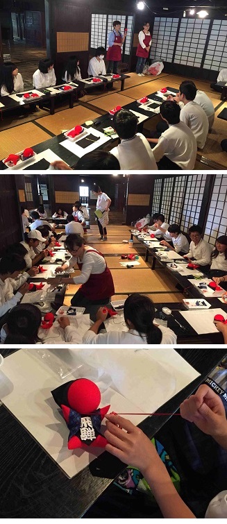 創作体験では、「さるぼぼ作り」・「写真立て作り」の2つに分かれ、復元された古民家で指導員の方に教えていただき、楽しくものづくりを体験しました。作品は持ち帰り、文化祭でも展示する予定です。