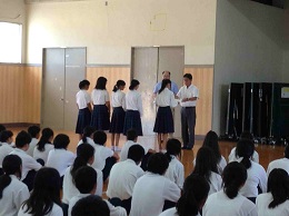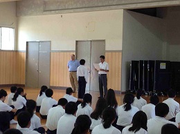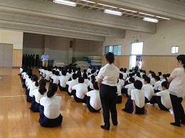 少林寺拳法部の全国大会出場をはじめ、夏休み中の部活動のお話がありました。すでに3年生が引退した部では、練習にも人数が不足し、困ることも多かったと思いますが、そのような状況の中でもよく頑張りました。