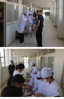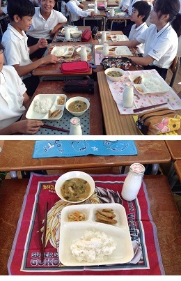 尚、主食のごはん(週に2度はパン食)と牛乳(ビン)はそれぞれ別の業者から配送されてきます。初日は準備に手間取った面もありましたが、従来より温かい給食に嬉しい様子でした。