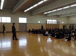 2学期の終業式を体育館で行いました。