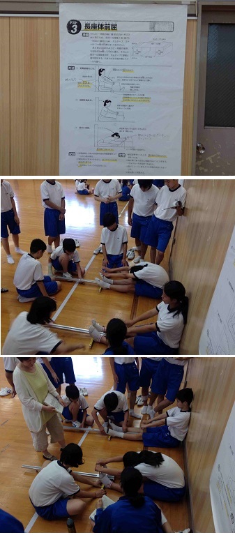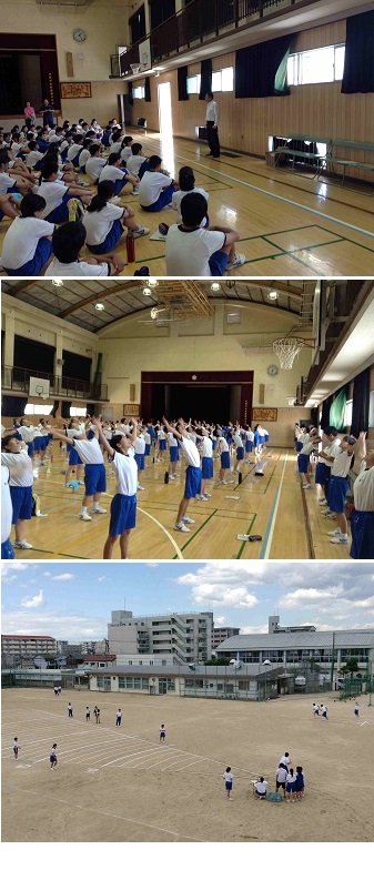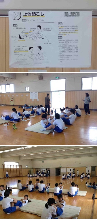 昨年度より1〜3年での縦割りでグループを作り、上級生が下級生をリードしながら移動し、体育館・運動場で長距離走以外の7つの種目について測定を試みました。