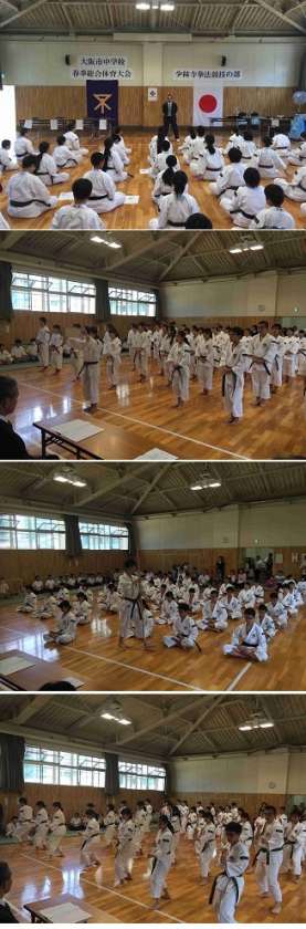 ・大阪市春季総合体育大会 少林寺拳法の部が大淀中学校で行われました。