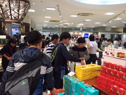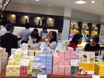 戻ってきた班からお土産を購入しています。