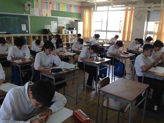 教室では3日間の疲れもある中ですが、しおりを横に置き、修学旅行を振り返っています。良かったことや反省することなどをまとめて、さらに今後の成長につなげてほしいものです。