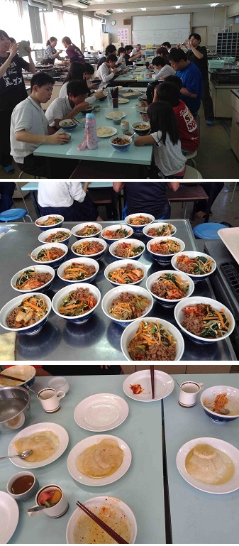 今回は「ビビンバ」をメインに、「キルムトック」と呼ばれる韓国の油もち、「ファチェ」(韓国の夏のデザートでフルーツポンチのようなもの)の3つをいただきました。