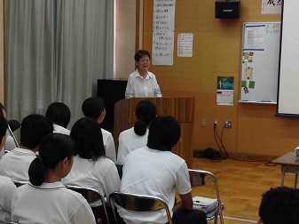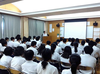 本日6限 3年生対象に学校薬剤師の先生を講師先生にお招きし、パワーポイントを使った解説・指導や、学年の先生と生徒によるロールプレイにより、からだに有害な薬物の種類や心身への害について学びました。