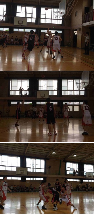 昨日の女子に続いて、男子バスケットボール部の大阪府大会(1回戦)が新北島中学校で行われました。