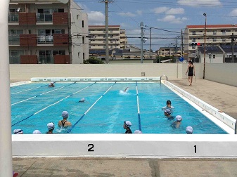 体育科でも水泳の補習を行っています。タイムを計測したり、さまざまな泳法にも挑戦しています。