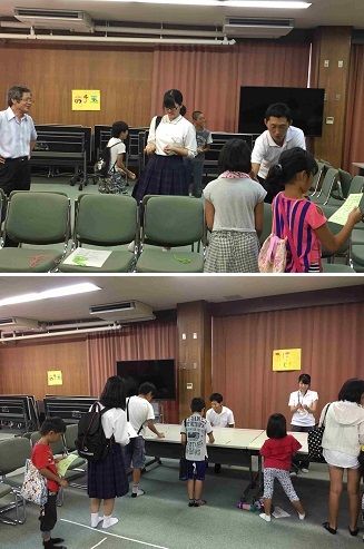 その後は班活動で、昔あそび・ものづくり・コインおとし・千羽鶴などの会場を、中学生が先導し小学生を引率して回りました。生徒会のみなさんお疲れ様でした。