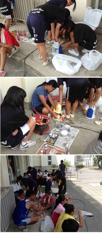 練習終了後は、差し入れのスイカやかき氷をみんなで楽しくおいしくいただいて、他校との交流も深めていました。