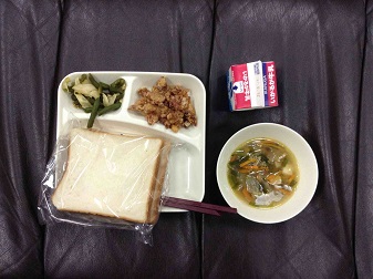 おかずは鶏肉のピリからあげ・中華スープ・キャベツと三度豆のあえもので、からあげは大人気でした。