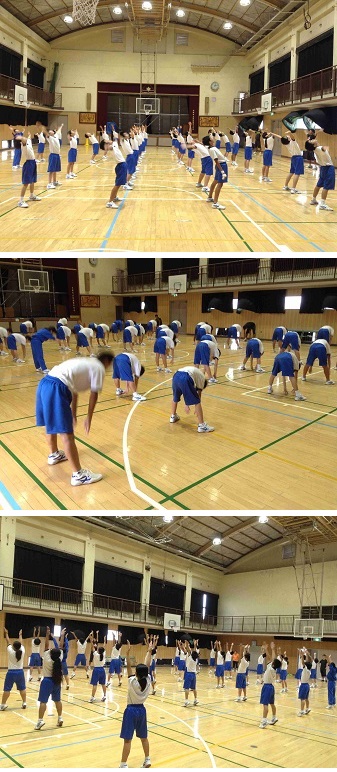 4時間目で、ちょうど雨が降ってきたので、体育館で練習が行われました。