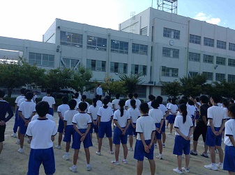 残暑の中でしたが、入場行進・ラジオ体操・校歌の練習などとても元気よく頑張っていました。