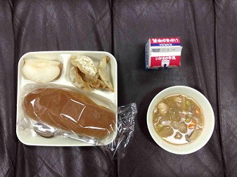 ・今日の給食はあげギョーザ、鶏肉ととうがんの中華煮、なし(豊水)でした。ごちそうさまでした。