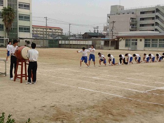 ・昨日に入れ替わり、体育大会の応援練習で今日は壱団が運動場の使える日です。