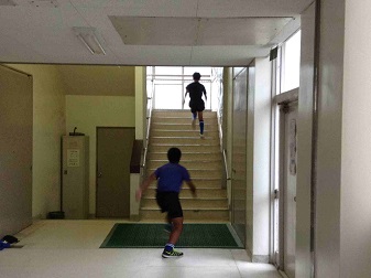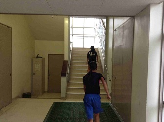 雨でグランドが使えないため、放課後ラグビー部が校舎内でトレーニングをしています。