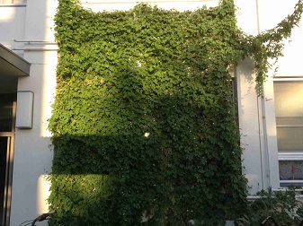 ・緑のカーテン(ゴーヤ)が全盛となっています。管理作業員室の窓は本当にカーテン状態となりました。