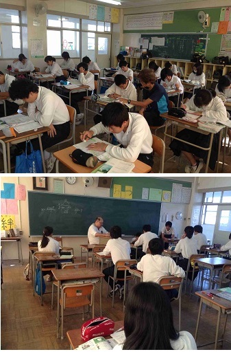 ・3年生の理科・社会は明日のテストに向けて、復習をしていました。