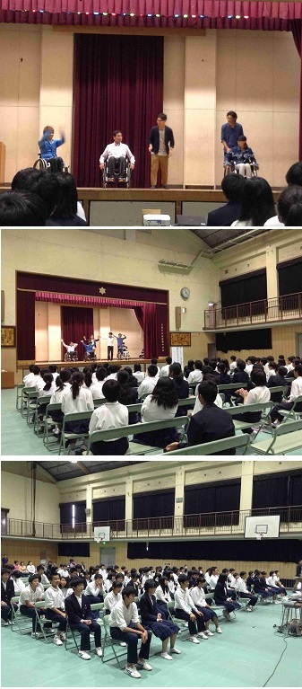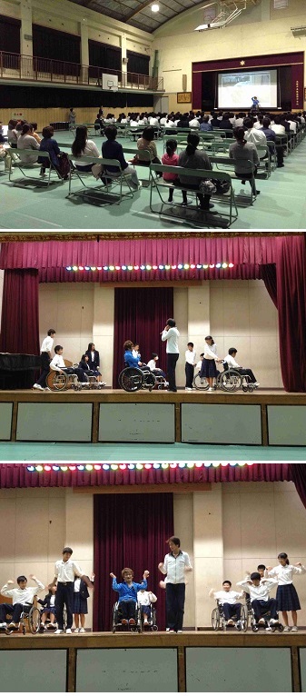 途中、生徒や教職員・保護者による車いすダンスの体験も交え、明るく楽しく時間が過ぎました。