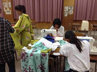 ・家庭科部が以前紹介した浴衣の作成をしています。第2号・第3号の完成目指して頑張ってください。