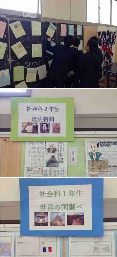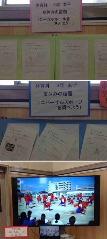 社会科からは歴史新聞・国調べ、体育科からも夏休みの宿題からのレポートが展示されていました。