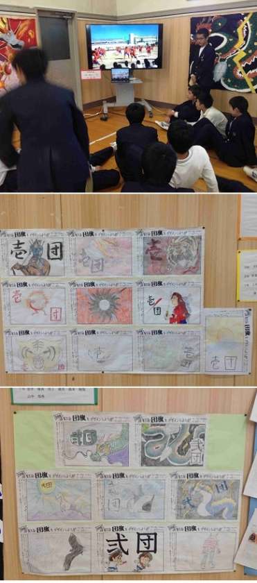 また、体育大会の応援団旗や元の下絵と3年生のソーランのビデオが見ることができました。
