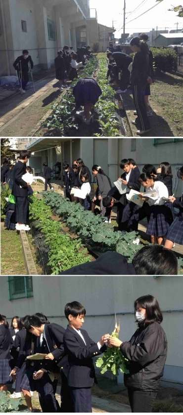 2年生で継続して学習している栽培実習では、田辺大根・天王寺かぶら・ブロッコリーの観察と間引きなどの作業をしています。