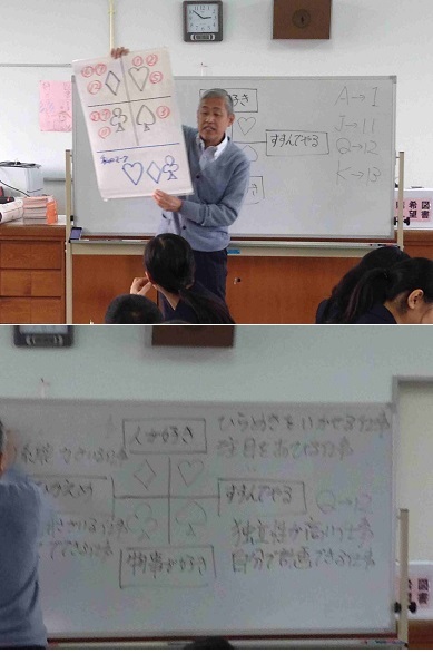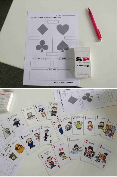 まず、SP(サブパーソナリティー)トランプというカードを使い、自己の性格等を診断し、自分の『強み』を知ります。