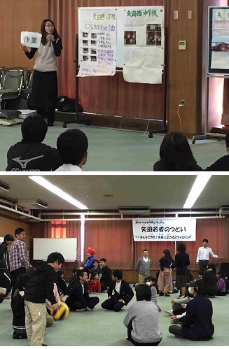 各学校での取り組み紹介の後、3中学校の生徒会主催でみんなでゲームをして、楽しい時間を過ごしました。矢田西中学校は〇×ゲームをし、参加者全員で参加しました。生徒会の皆さん、参加者の皆さんお疲れ様でした。