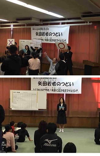 今年のテーマは「みんなで作れ!矢田に広がるスマイリング(笑顔の輪)」で、本校からは生徒会の人たちが参加しました。