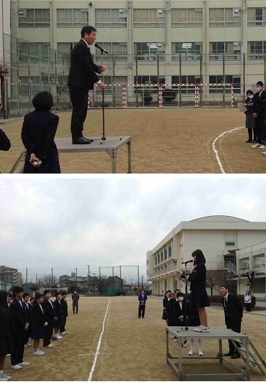 全校集会で、校長先生のお話と各委員会からの報告(1月・2月の目標)がありました。
