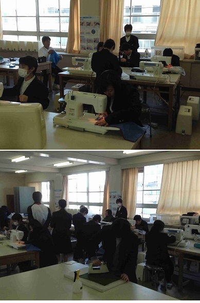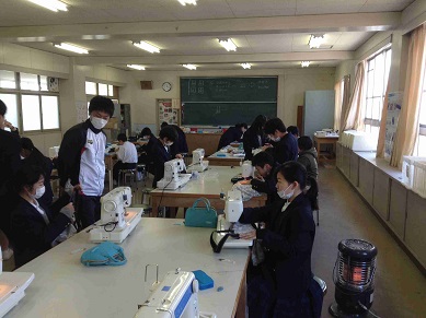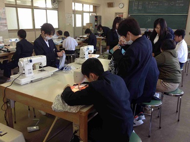・家庭科では2学期に途中で中断していた裁縫(エコバックの作成)の続きをしています。