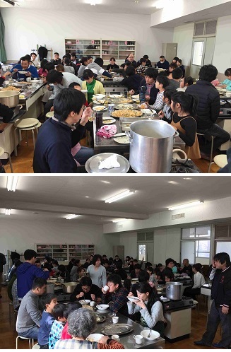 遊びの後は子どもたちも調理のお手伝いを一緒にしました。