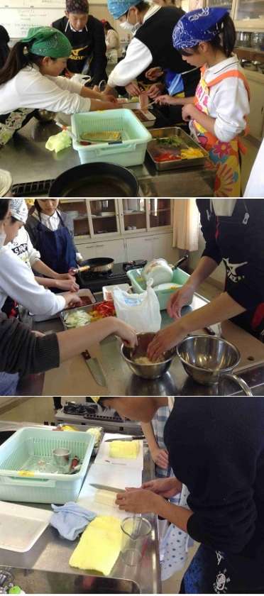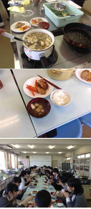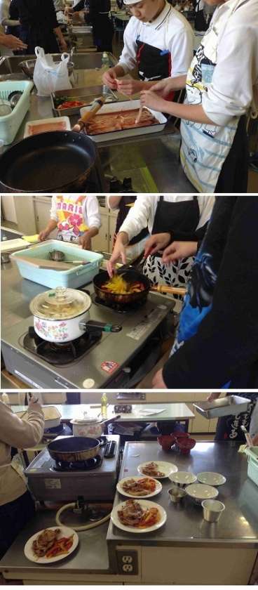 豚の生姜焼き・パプリカの付け合せ・すまし汁を班で協力して作りました。
